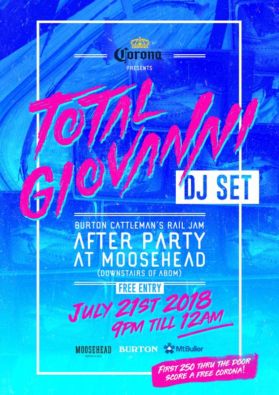 Total Giovanni will be whipping the Moosehead dance floor into a wild bacchanalian frenzy with their sexually charged rhythm at the Burton Cattleman's Rail Jam After Party.
