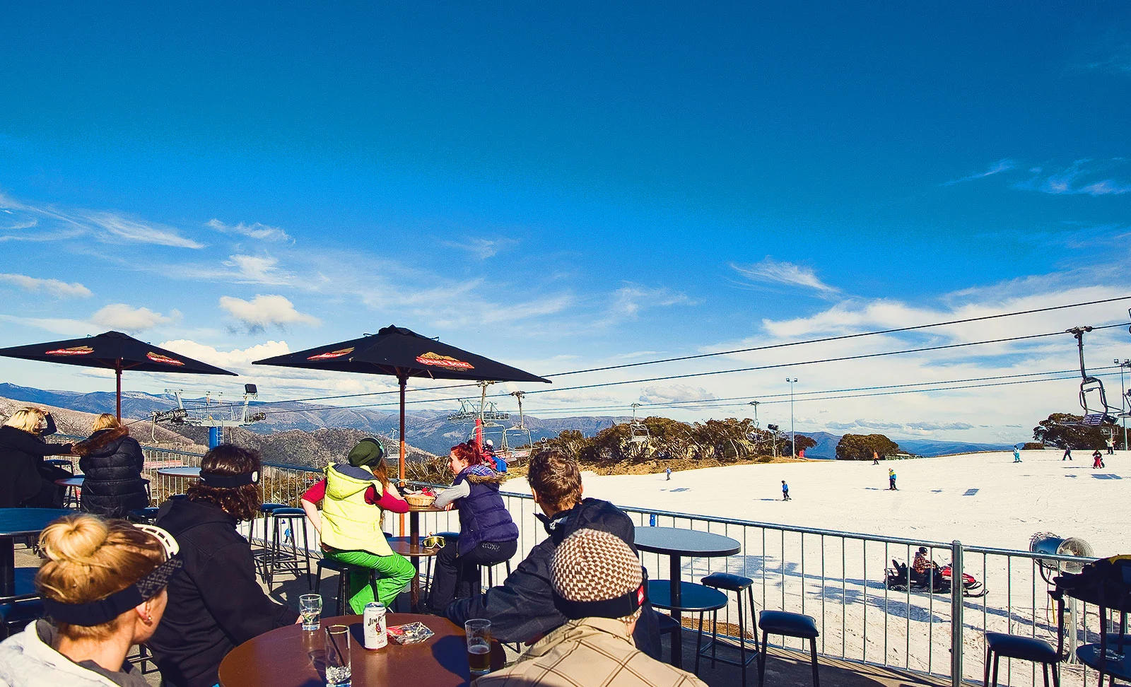 'Le Roof' is the ultimate hangout spot atop the Arlberg Hotel in Mt Buller, offering epic views of the Bourke Street run – the go-to trail for shredding. After a day of hitting the slopes, kick back in this cozy rooftop deck, soak in the scene, and chill with friends.